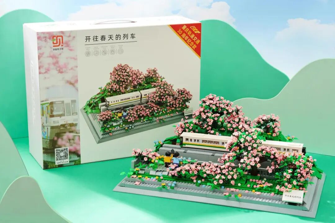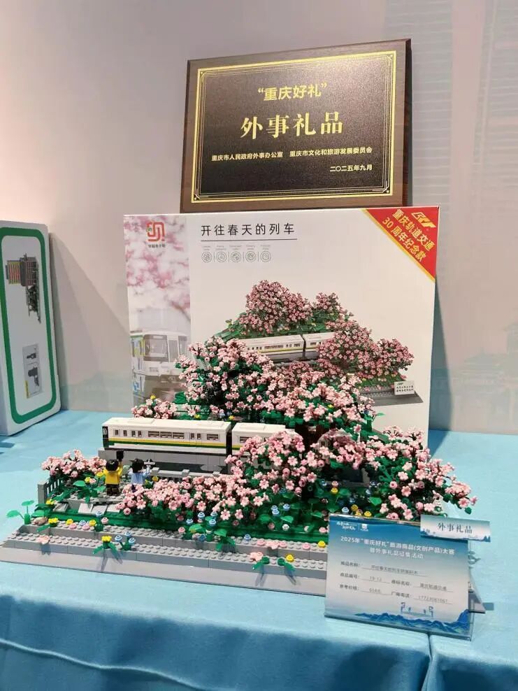 “开往春天的列车”拼装积木“开往春天的列车”拼装积木以轨道交通列车穿越花海的现实景观为灵感,还原了列车在美人梅花丛中穿行的春日美景,并搭配游客打卡造型的积木人偶,生动融合了重庆的雄奇山水与轨道交通的现代气息。此次文创产品入选外事礼品名录,不仅体现了轨道交通文创实力,更生动展示了重庆的城市风情,促进对外文化交流。