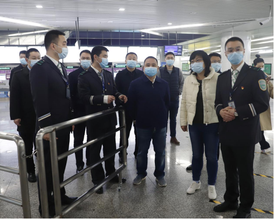 2022年4月2日上午,重庆交通开投集团党委副书记、总经理吴家宏带队前往地铁10号线江北机场T3航站楼站,检查安全运营及常态化疫情防控工作。